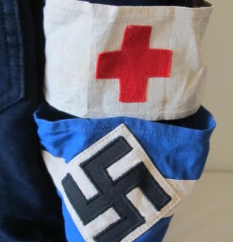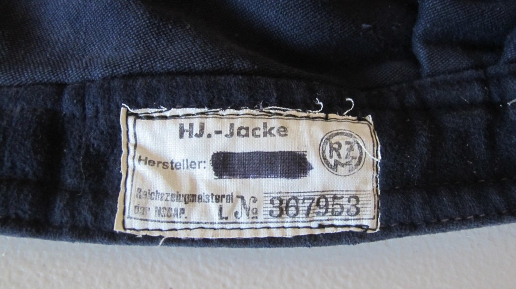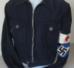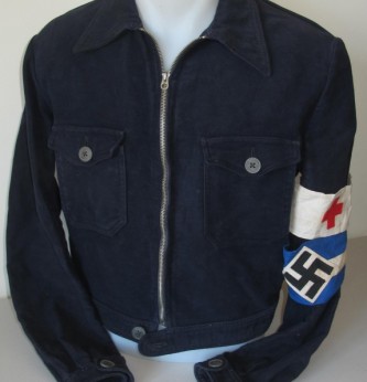 Scarce Third Reich Hitler Youth Marine Winter pattern two pocket BD style service tunic. Zip front and two breast pockets. Plain bakelite buttons. Scarce HJ service blue/black/white arm band plus above this Red Cross arm band for Medical Service. HJ label to inside of tunic. Overall a nice example of this early winter issue service tunic. As worn by HJ Marine units.
