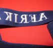 Scarce Third Reich Luftwaffe full length Afrika service cuff band. Blue wool with embroidered white lettering. Two small pin head moth nips to back of band. Otherwise excellent. As worn by Luftwaffe personnel serving with the Afrika korps.