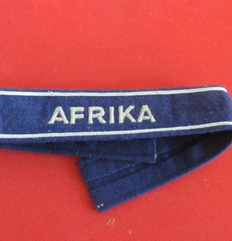 Full length Luftwaffe Afrika Service cuff band. Blue wool with hand embroidered lettering to centre. Good condition.
