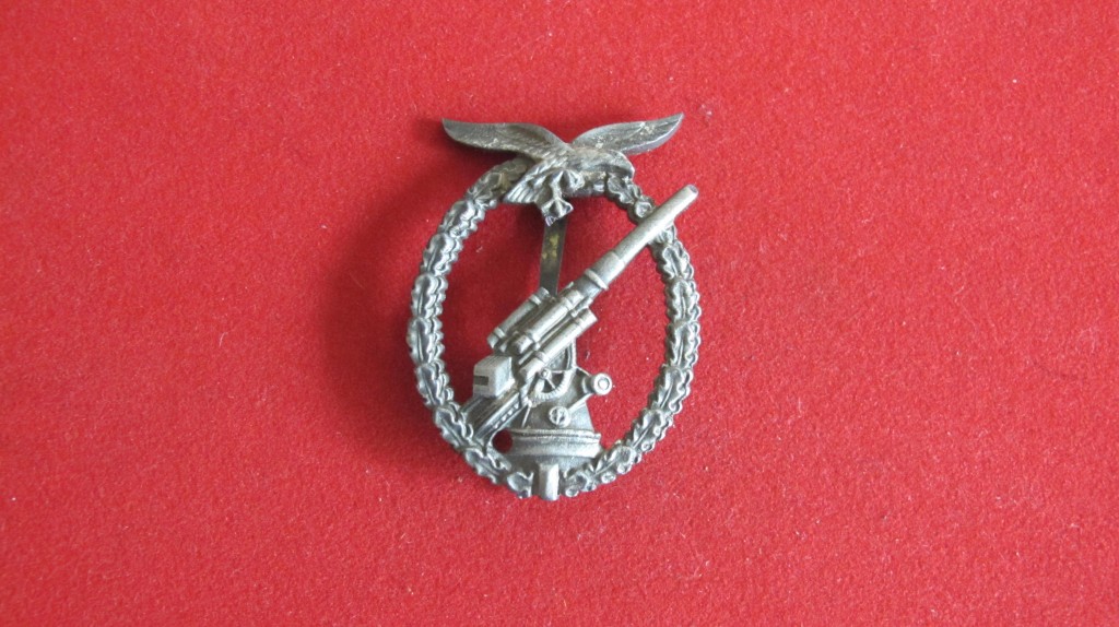 Early war Luftwaffe flak badge. award for the shooting down of aircraft. This example has bee de-nazified probably by POW. Complete with hook an pin.