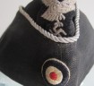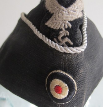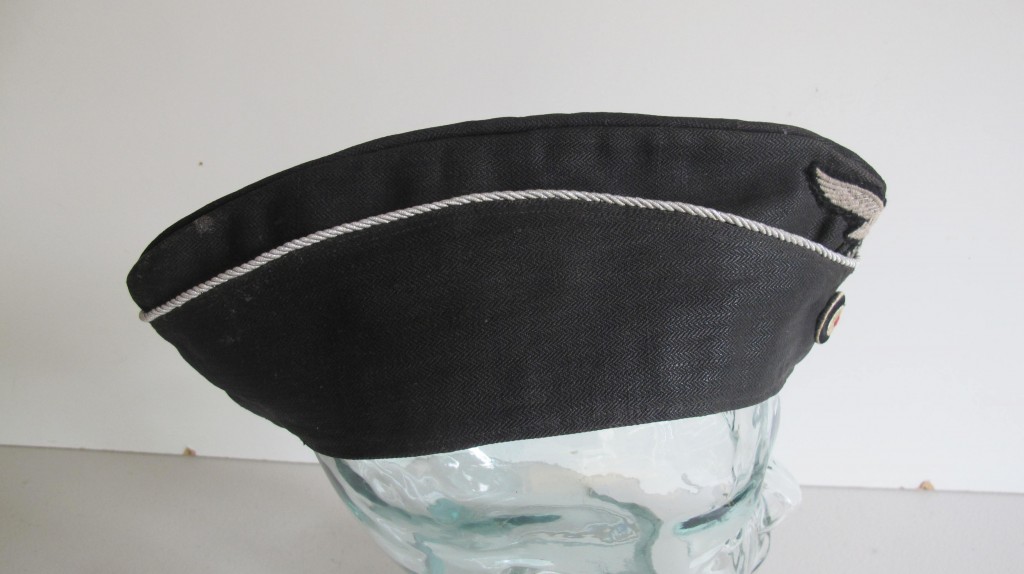 Third Reich Senior NCOs Luftwaffe Herman Goring Division Denim side cap. Size marked 60 and with Berlin manufacturers stamps to inside. Complete with its correct pattern black backed machine woven Herman Goring Division insignia. NCOs piping to cap. Excellent condition.