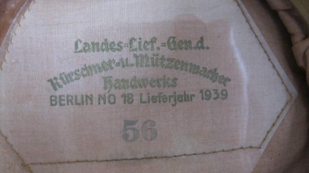 1939 dated and Berlin maker marked Luftwaffe Flight Section NCOs peaked cap. Tall saddle shape. Complete with original metal insignia. Two minor moth nips to cap but generally sound. A nice example of this early war NCOs cap. As worn by flying personnel during the Battle of Britain etc.