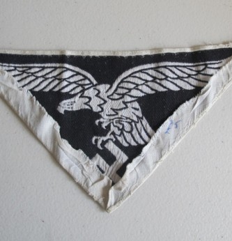 Third Reich Luftwaffe Sport vest bevo eagle. Measures 23cm in diameter. Black Luftwaffe bevo eagle on white backing. Removed from vest and in good condition.