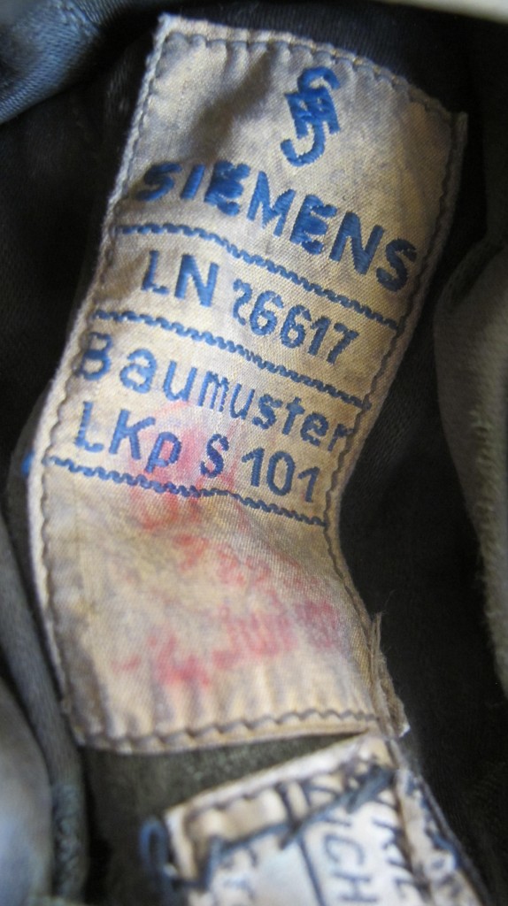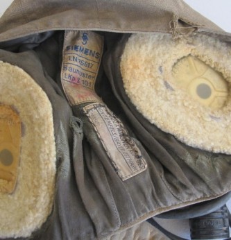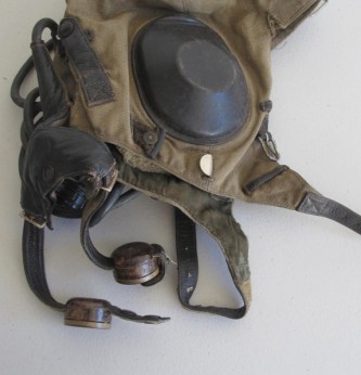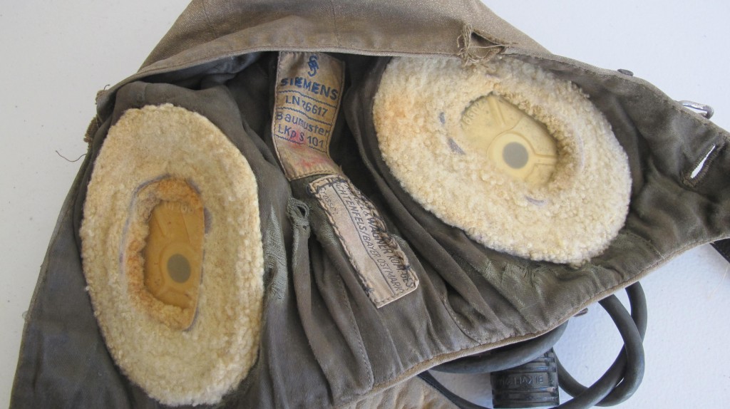 WWII Luftwaffe Pilots canvas flying helmet. Complete with earphones, throat mikes and jack lead. Manufactured by Siemens. Makers label to inside. A nice example of this Battle of Britain period Pilots flying helmet. Shows only minor service wear.