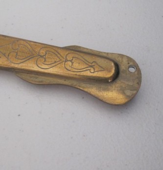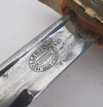 Third Reich German Naval Officers Sword by Holler, Solingen. White wire bound bakelite grip in good condition. Folding cross guard with anchor device. Plain blade by F W Holler in nice overall condition with just a couple of minor finger stains. Comes complete with its original felt washer and correct pattern brass and leather scabbard. One small hole to bottom brass chape where displayed in Museum. Otherwise nice overall example.