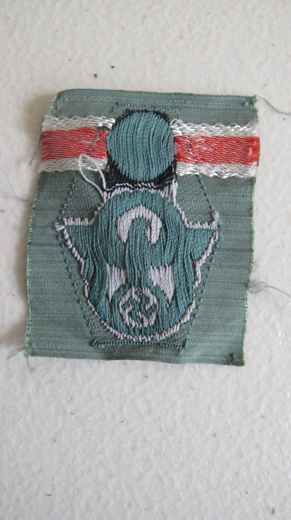 Third Reich bevo Field Police M43 one piece cap insignia. Bevo police eagle with cockade above. Cut from roll and in excellent condition.