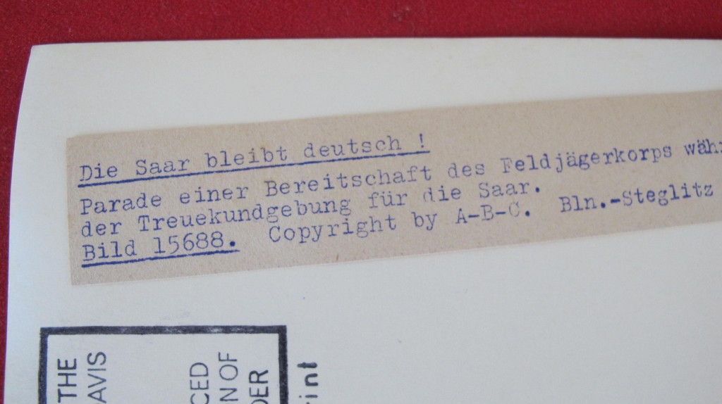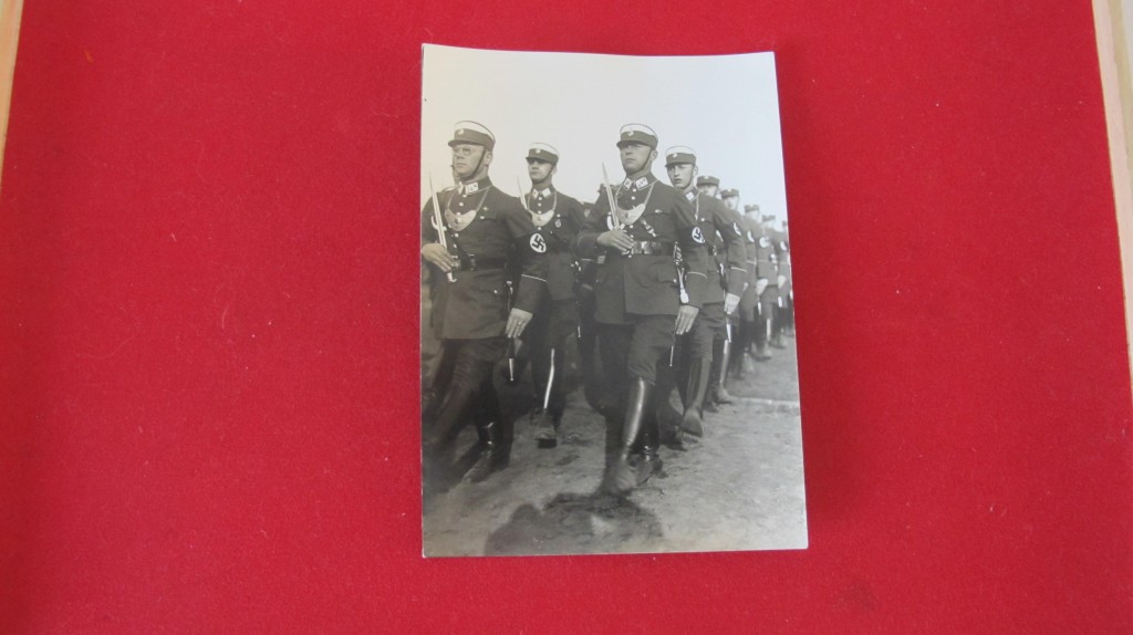 Scarce period photo showing SA Feldjagerkoprs  on parade wearing gorget and carrying clam shell bayonet. Ex Brian Davis collection and used for his reference books.