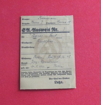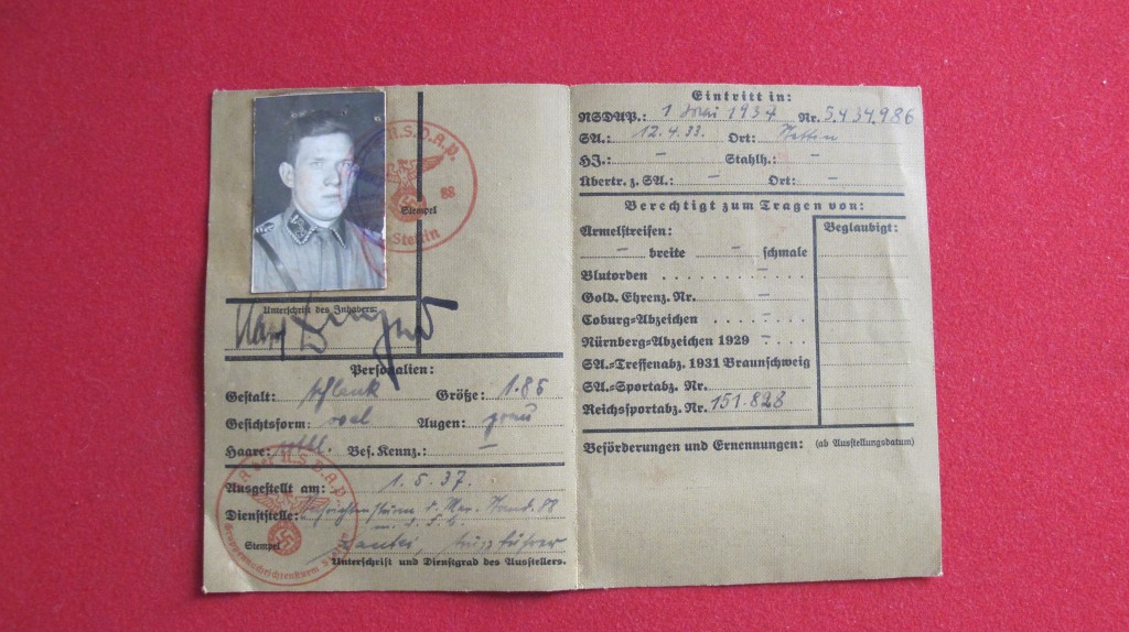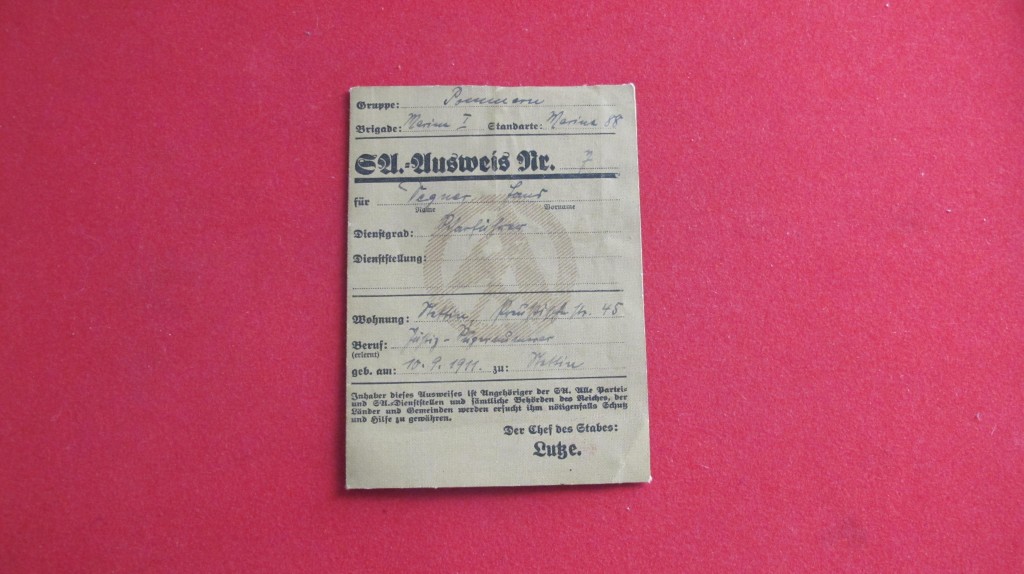 Third Reich SA Marine Identification Pass – Item 117559