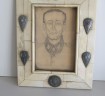 Interesting bakelite (imitating ivory) picture frame with period pencil sketch of SS Brigadefuhrer and General Major of the Waffen SS Zehender August. This interesting frame measures 23 x 18cm with sketch of August in uniform wearing his Knights cross with oakleaves. Reverse of frame marked with his death 11.2.1945. Around the frame decorated with various Nordic badges. Sold with photocopy history of his career.