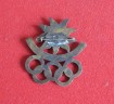 Third Reich German Winter Olympics commemorative badge. Shows mountain flower with enamelled swastika to centre an scroll below “Garmisch/Patenkirchen” and Olympic rings below. Small chip to one ring otherwise nice. Pin fixing to reverse and makers marks.