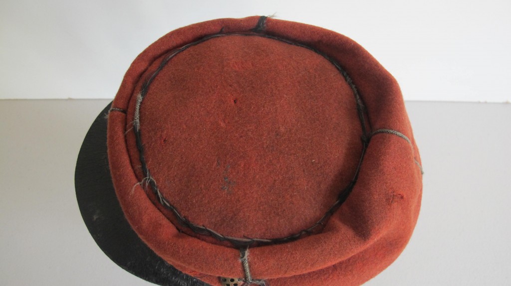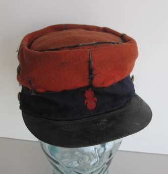 Interesting WWI French early war Other Ranks red top Kepi. Complete with flaming grenade cloth device to front and ide buttons. Original cloth oil skin liner. Good overall condition for age with only minor service wear.